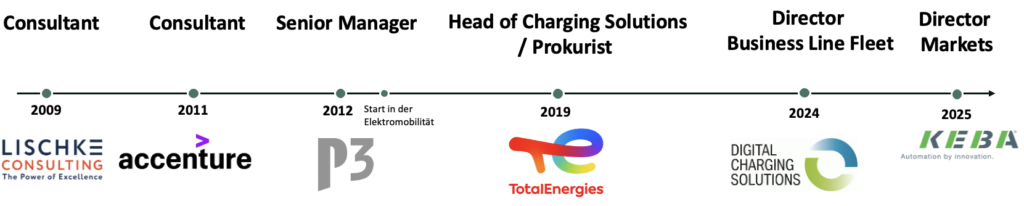 2009 begann meine Geschichte in der Branche der Telekommunikation, ging weiter über die Logistik, anschliessend über Automotive hin zu einem der größten ChargePoint Operator in Deutschland und Europa. Zu erst als Berater und ab 2019 dann in der Rolle des Bereichsleiters Charging Solutions.